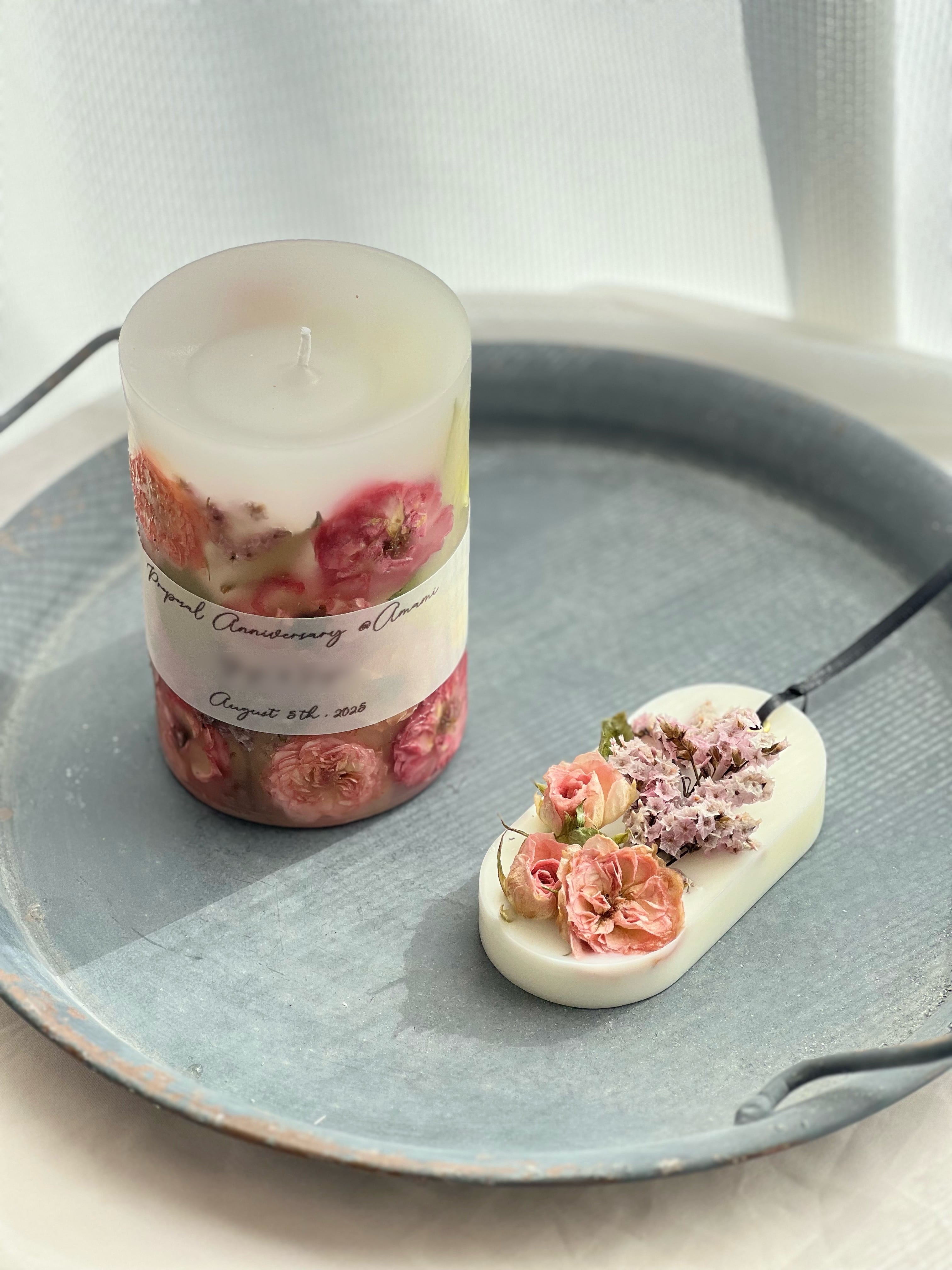 名前のとおり、お花をたくさん詰め込んだ「世界にひとつだけ」のキャンドル
